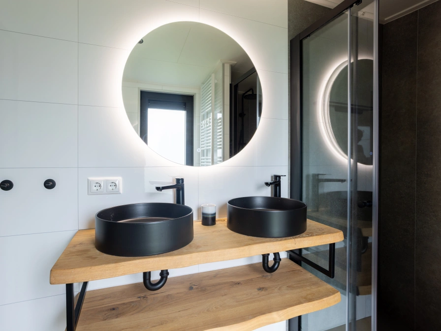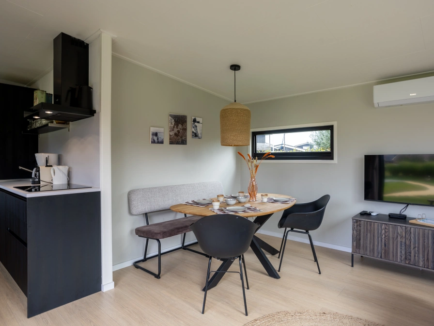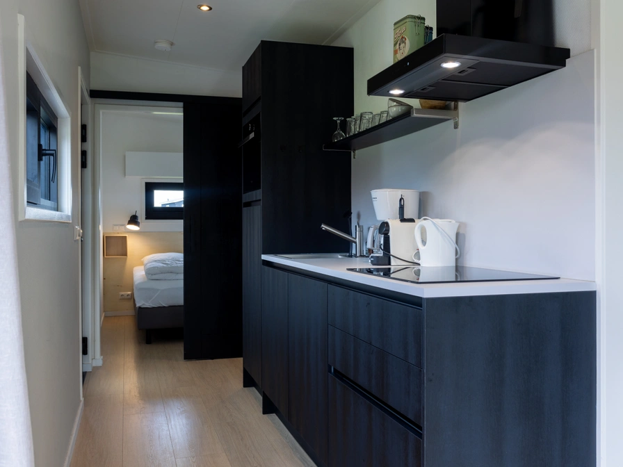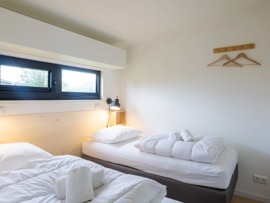 Krûswetter Lodge is een modern vierpersoons vakantiehuis met uitzicht op het haventje. De woning is gelijkvloers en heeft een sfeervolle woonkamer met zithoek, televisie met Netflix en een eethoek. De open keuken is compleet uitgerust met inductiekookplaat, combimagnetron, vaatwasser en koelkast met vriesvak. Er zijn twee slaapkamers: één met een tweepersoonsbed en één met twee losse bedden. De badkamer heeft een regendouche en elektrische sauna, plus een apart toilet. Buiten geniet je op het zonnige zuidwestterras met loungebank en stoelen.