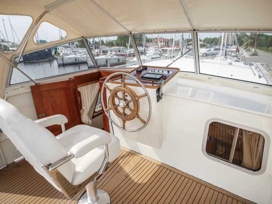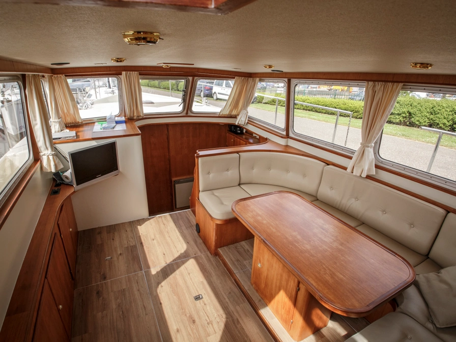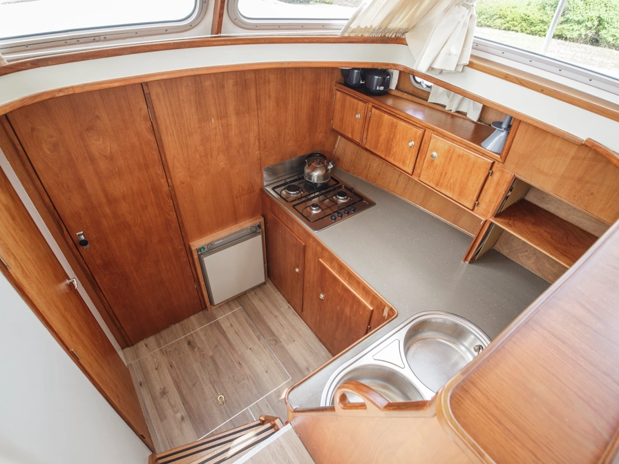 Het schip biedt slaapplaats aan 2 x 2 personen. Een voorhut met twee bedden en een achterkajuit met een tweepersoonsbed van 200×140 cm. Er zijn twee toiletten aanwezig. De ruime zit in de salon biedt voldoende plaats aan het hele gezin of twee echtparen. De keuken is van alle gemakken voorzien zodat het u aan niets ontbreekt onderweg. Mocht het fris zijn, dan zorgt de heteluchtverwarming voor een aangename temperatuur aan boord. Uiteraard is dit schip voorzien van een sterke boegschroef.