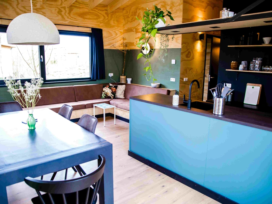 Blaupoatsje betekent kleine rietgans in het Fries. Het Blaupoatsje staat centraal aan de zuidzijde van de locatie en is gelegen vlakbij het speelveld en de Lytse Ie. Hierdoor is het de perfecte gezins-locatie. Bij de lodge is een ruim terras waardoor je ook veel buitenruimte hebt. De waterlodge beschikt over een grote open woonruimte met open keuken. Door de open inrichting ben je altijd betrokken bij elkaar. De eettafel staat centraal in de waterlodge en biedt plaats voor zes personen. Daarnaast is er een knusse zithoek met twee banken, comfortabele stoel én een houtkachel. Er zijn drie slaapkamers in waterlodge Blaupoatsje. Een slaapkamer heeft een tweepersoonsbed, de tweede slaapkamer heeft twee losse eenpersoonsbedden en de derde slaapkamer beschikt over een stapelbed. De bedden zijn comfortabele boxspringbedden en zijn voorzien van eenpersoonsdekbedden, kussens en moltons. Overig beddengoed kun je huren, maar je mag het ook zelf meenemen. Er is een badkamer, welke is voorzien van een douche, wastafel en toilet. Tevens is er nog een tweede toilet aanwezig in de waterlodge.