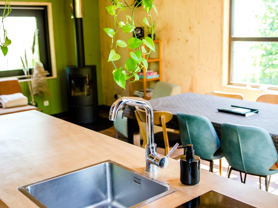 Natuurhuisje Ljip ligt aan de zuidoostzijde van Pean-buiten en heeft twee terrassen en een gedeelde steiger aan het meer. Van vroeg in de ochtend tot laat in de avond kun je hier genieten van het uitzicht over het water en de landerijen. De zithoek biedt een wijds zicht op de natuur, terwijl de houtkachel zorgt voor warmte en sfeer. De eettafel is een fijne plek om samen te eten. De keuken is compleet uitgerust met een keramische kookplaat, oven en vaatwasser. Het huisje heeft twee slaapkamers met een boxspring en een slaapkamer met stapelbed. De badkamer heeft een douche, toilet en wastafel. Binnen en buiten lopen in elkaar over op het privéterras, waar een eettafel met stoelen staat om samen te eten of te ontspannen aan het water.