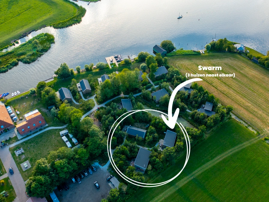 Waterlodge Swarm bestaat uit drie aparte waterlodges op één terrein, perfect voor maximaal 14 volwassenen en 4 kinderen. De eerste lodge vormt het centrale punt met een zithoek, lange eettafel en een keuken voor 16 personen. Hier vind je ook een tweepersoons slaapkamer met eigen badkamer en een extra toilet. Lodge 2 en 3 bieden elk slaapruimte voor acht personen met boxspringbedden en stapelbedden, een eigen keuken, zithoek en badkamer. Alle lodges hebben een houtkachel, terras met uitzicht op de natuur en een gezamenlijke tuin voor buitenactiviteiten. Swarm is perfect voor gezinnen, vriendengroepen en zelfs zakelijke bijeenkomsten die rust en ruimte zoeken.