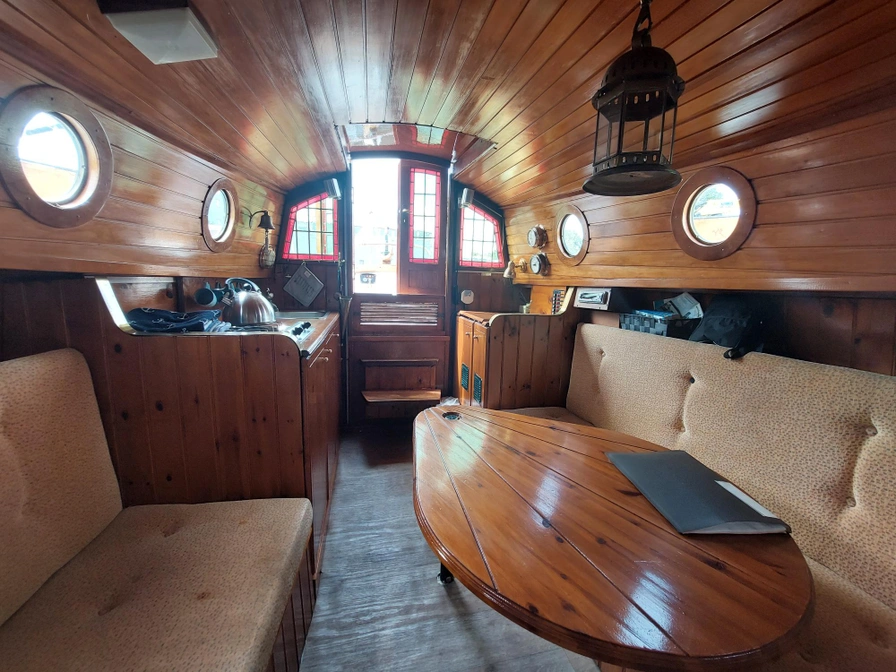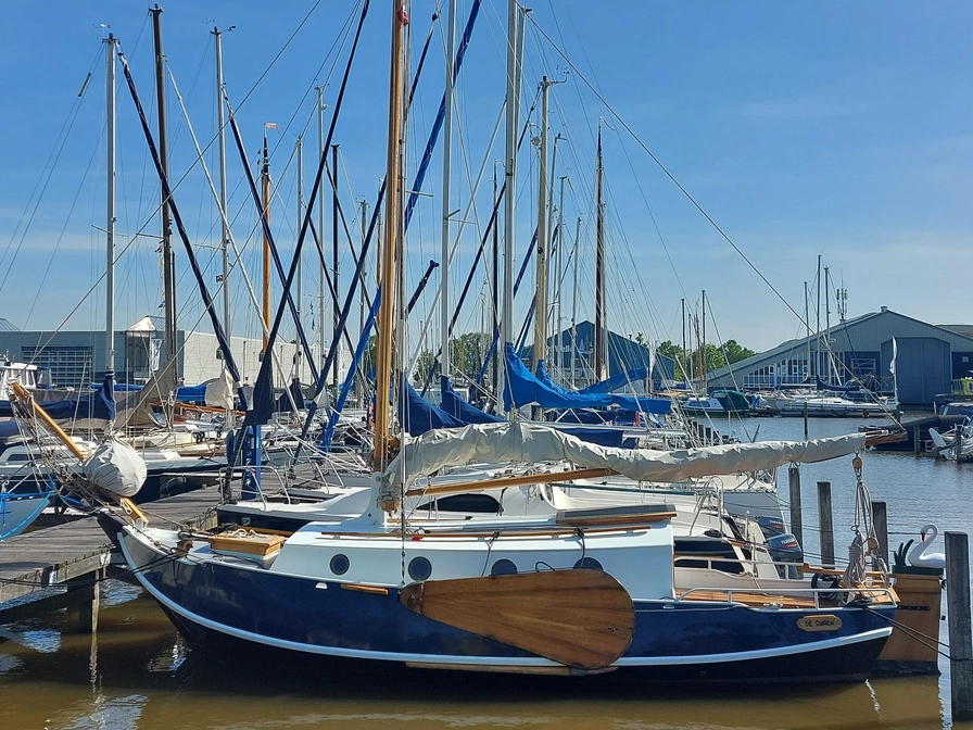 Stap aan boord van deze lichte en eenvoudig te zeilen platbodem. De boot beschikt over een een dieselmotor, keukentje en toilet. Achterin bevinden zich twee bedden, er is eventueel ook ruimte voor twee kleine kinderen. Tevens is er een zitruimte binnen en buiten in de kuip. De Swaen is relaxed te zeilen en zeilt goed in balans. Afmeting boot: 7,50 x 3,00 x 0,65 Doorvaarhoogte: 10,50 meter