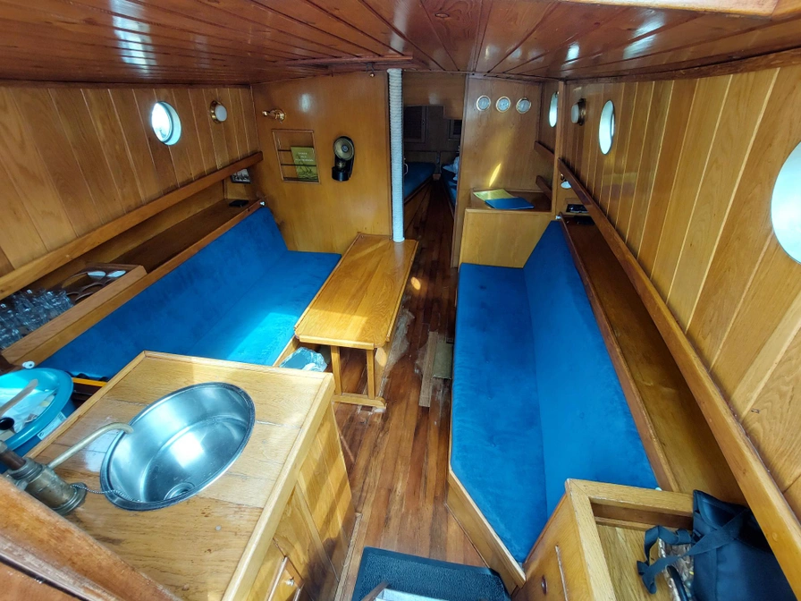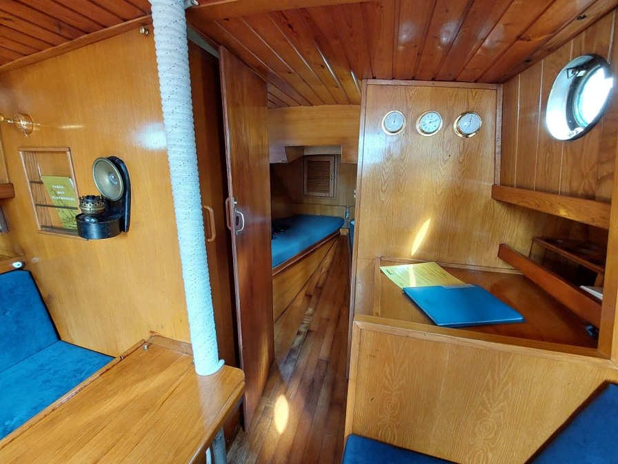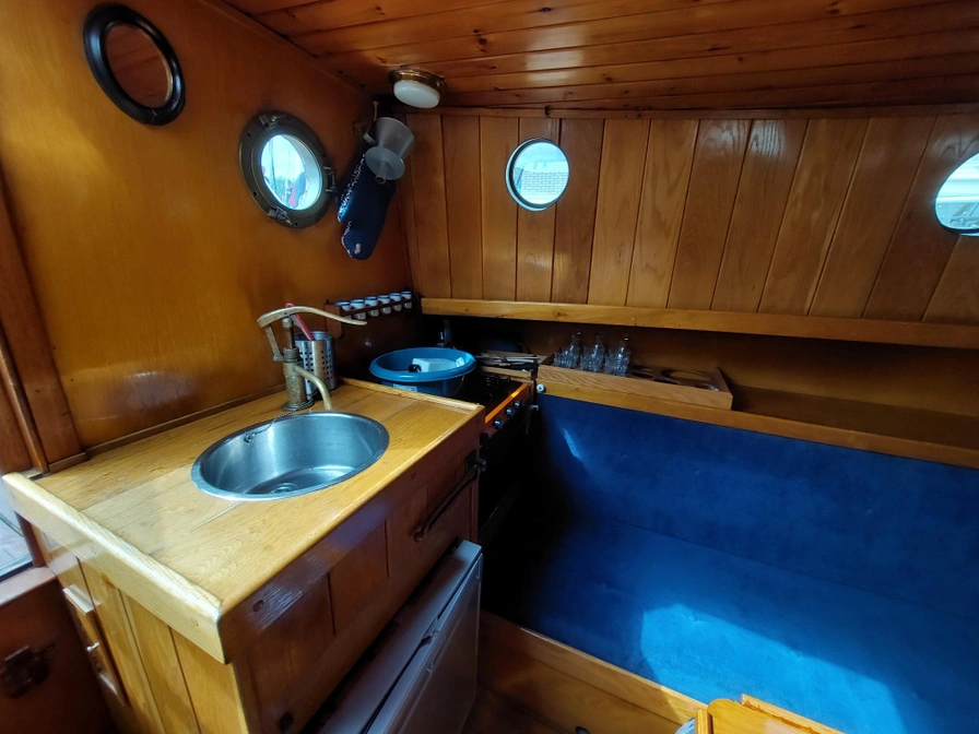 Stap aan boord van deze mooie zeeschouw. De boot heeft verrassend veel ruimte binnen en stahoogte. Binnen is het heel gezellig en je bent van alle gemakken voorzien. In het vooronder is een tweepersoonsbed en een eenpersoonsbed. Van de banken in de kajuit kun je twee slaapbanken maken. De boot is voorzien van een keuken met koelkast, fornuis, oven, elektrische verwarming en een toilet. De boot is makkelijk te zeilen, naast de gewone fok is er ook nog een kluiver en een botterfok. Afmeting: 9,40 x 3,45 x 0,89
