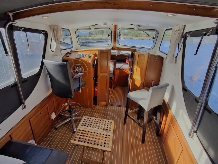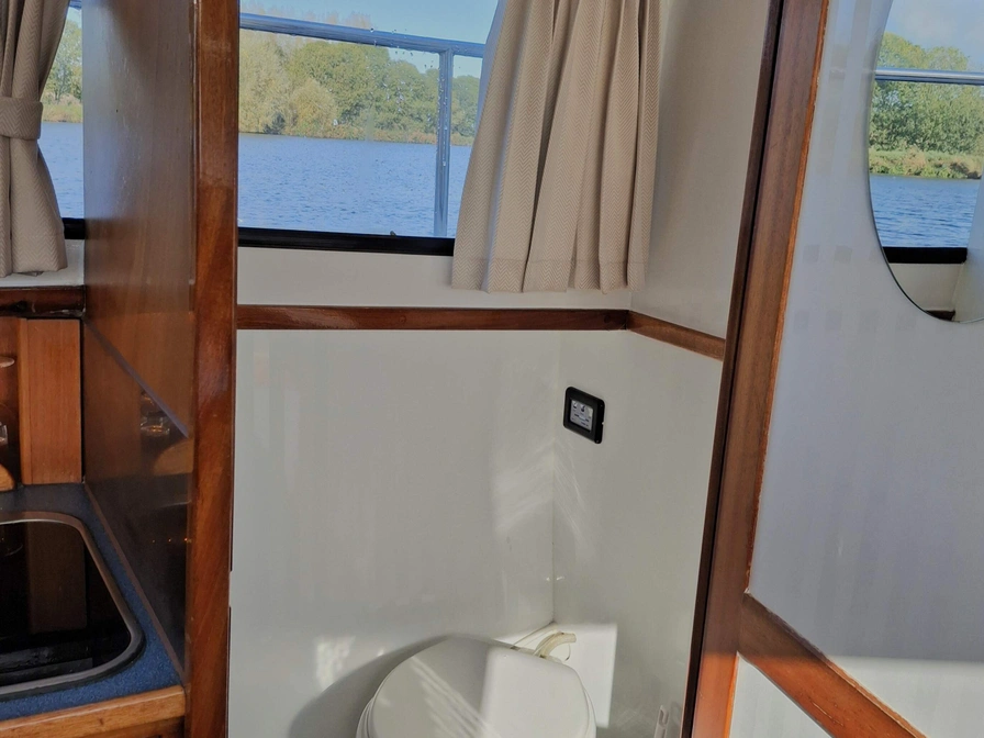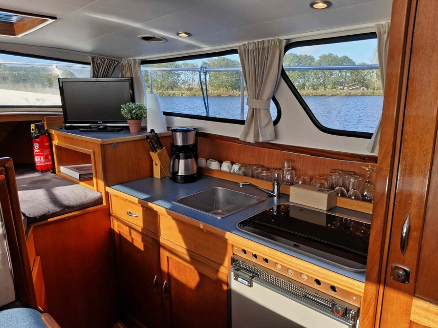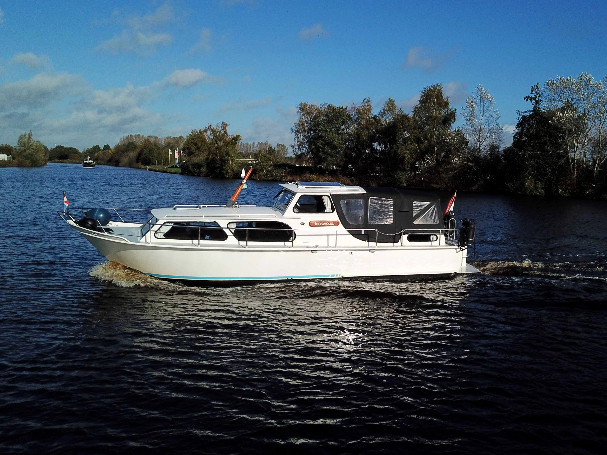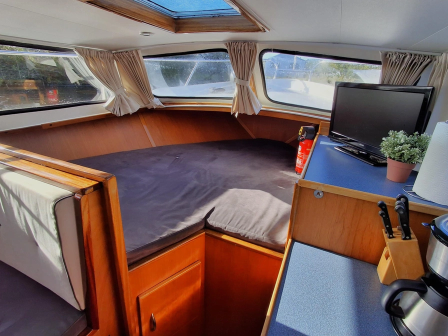Beleef een ontspannen vaarvakantie in Friesland aan boord van de Jonkvrouw, een comfortabele Brekkenkruiser van 10 meter, aangeboden door REM Yachtcharter. Geschikt voor 4 personen. Dankzij de open kuip en achterhut is deze boot zeer geschikt voor een gezin met kinderen of twee stellen die samen willen genieten van het water. Voorin vind je een ruim tweepersoonsbed en achterin twee losse bedden, die je eenvoudig kunt samenvoegen tot één groot bed. Zo is er voor iedereen een prettige slaapplaats. De Jonkvrouw heeft een lage doorvaarthoogte, waardoor je vaak zonder oponthoud onder bruggen door kunt varen en de mooiste plekjes in Friesland bereikt. Aan boord profiteer je van voorzieningen als 230V via een omvormer, een boegschroef, een toilet en een douche. Terwijl je ontspannen over het water glijdt, geniet je van het steeds wisselende Friese landschap.