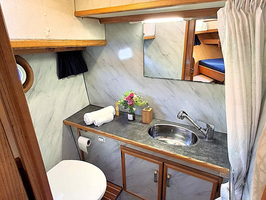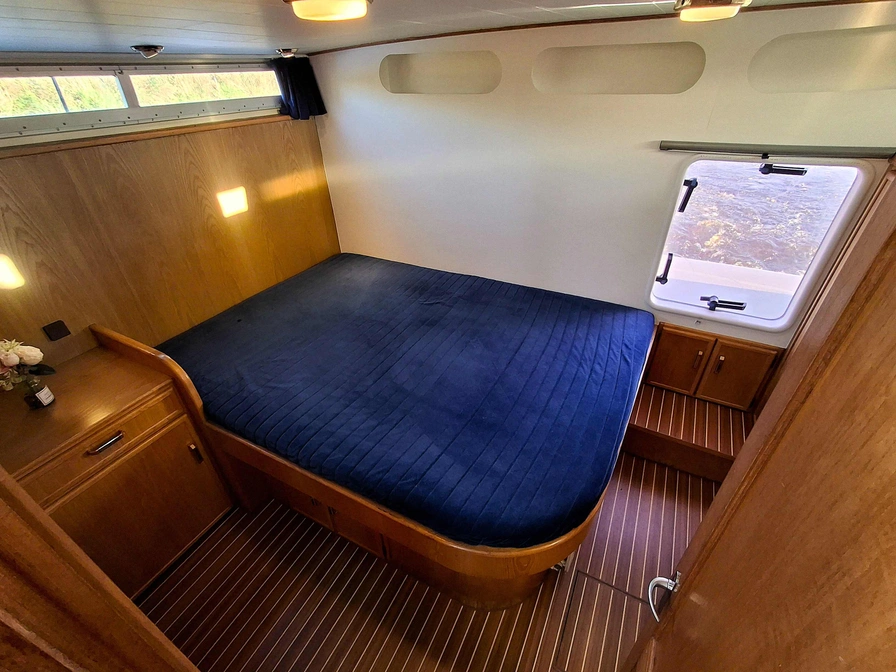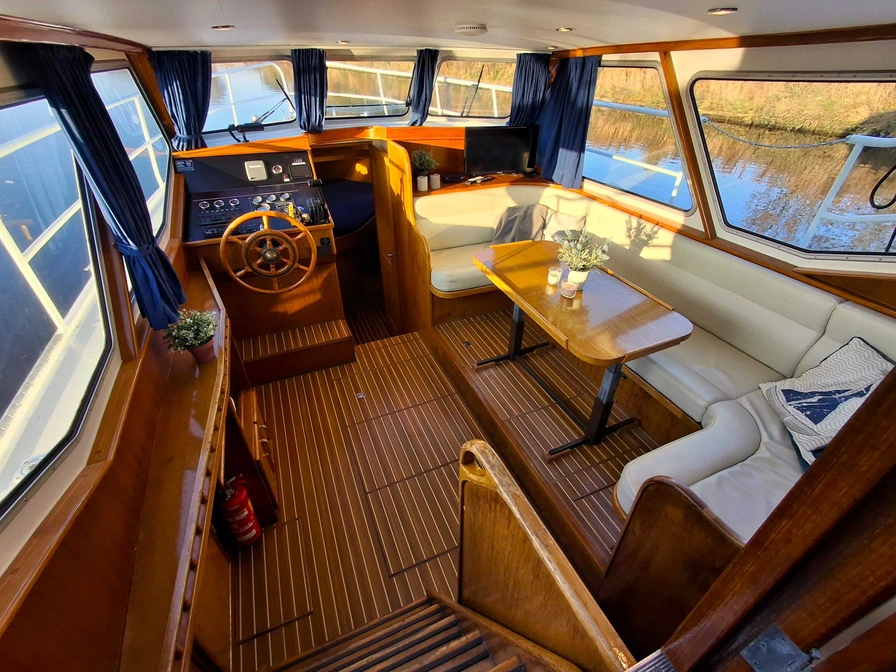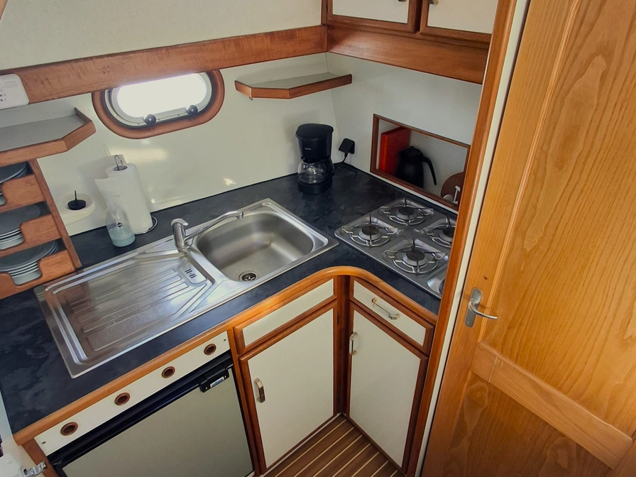De Capella van REM Yachtcharter biedt alles wat je nodig hebt voor een comfortabele vaarvakantie in Friesland voor 4 personen. Dit degelijk gebouwde schip van de bekende Pedro-werf is praktisch ingedeeld met twee cabines. Beide cabines beschikken over een royaal tweepersoonsbed, elk met een eigen douche en toilet. Daarmee is de boot uitermate geschikt voor twee stellen of een gezin met kinderen. Je geniet aan boord van alle gemakken: 230V via een omvormer, een boegschroef voor eenvoudig manoeuvreren en een ruime tent over het achterdek, zodat je ook bij minder weer prettig buiten kunt zitten. De Capella combineert comfort met gebruiksgemak – perfect om Friesland op je eigen tempo te ontdekken.