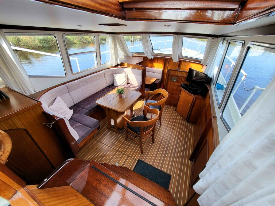 De Jonkheer is een uitstekende keuze als je Friesland vanaf het water wilt verkennen in comfort en stijl met 6 personen. Dit ruime motorschip, type Vacance 1150, is van alle gemakken voorzien en bijzonder geschikt voor families die graag samen op pad gaan. Met drie cabines en zes vaste slaapplaatsen heb je volop ruimte aan boord. De sfeervolle verlichting en aanwezigheid van een Nespresso-machine zorgen voor extra comfort. Daarnaast beschik je over een aparte douche en toilet, 230V via een omvormer en een boegschroef, wat het varen en manoeuvreren een stuk makkelijker maakt. Of je nu houdt van rustige tochten of het ontdekken van levendige dorpen en stadjes, met de Jonkheer geniet je in alle rust van een zorgeloze vaarvakantie in Friesland.