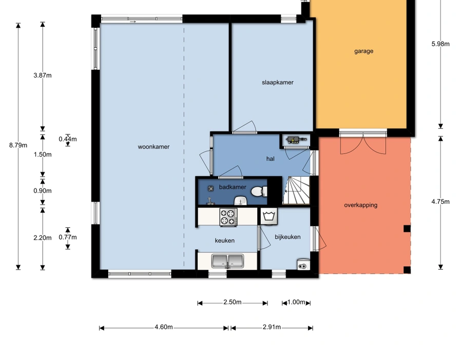 Deze fijne, vrijstaande woning aan het water is van alle gemakken voorzien! Nadat je auto is geparkeerd en je door de voordeur naar binnen bent gestapt, sta je in de hal van het huis. Hier vind je meteen al de eerste badkamer. Wanneer je de woonkamer binnenstapt zie je een ruime woonkamer met grote bank, geschikt voor het gehele gezin! Via de eetkamer loop je zo de keuken in, waar je fijn kunt koken. Op de begane grond is ook een van de slaapkamers gesitueerd. Wanneer je de trap op naar boven loopt, sta je op de vide vanwaar de hele woonkamer en eetkamer kan worden overzien. Tevens zijn hier twee slaapkamers, waarvan een met een stapelbed en de andere met twee boxspringbedden. In de badkamer boven kun je zelfs heerlijk luieren in bad. Vanaf de woonkamer stap je zo de tuin in, hier kun je genieten van het weer, een duik in het water nemen of aan boord stappen van je (gehuurde) sloep!