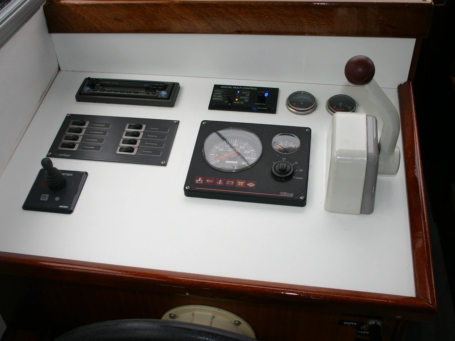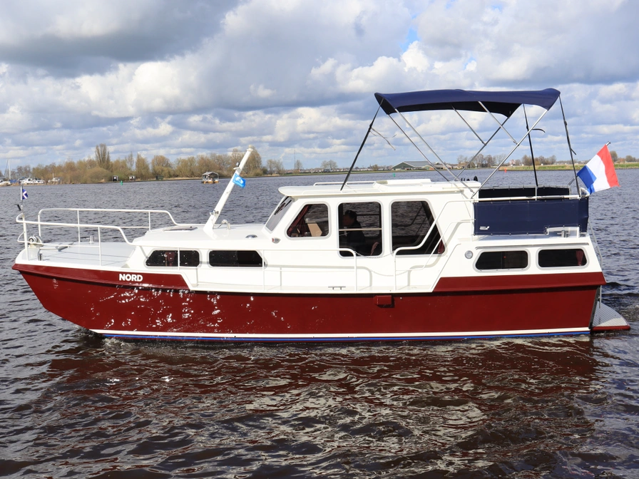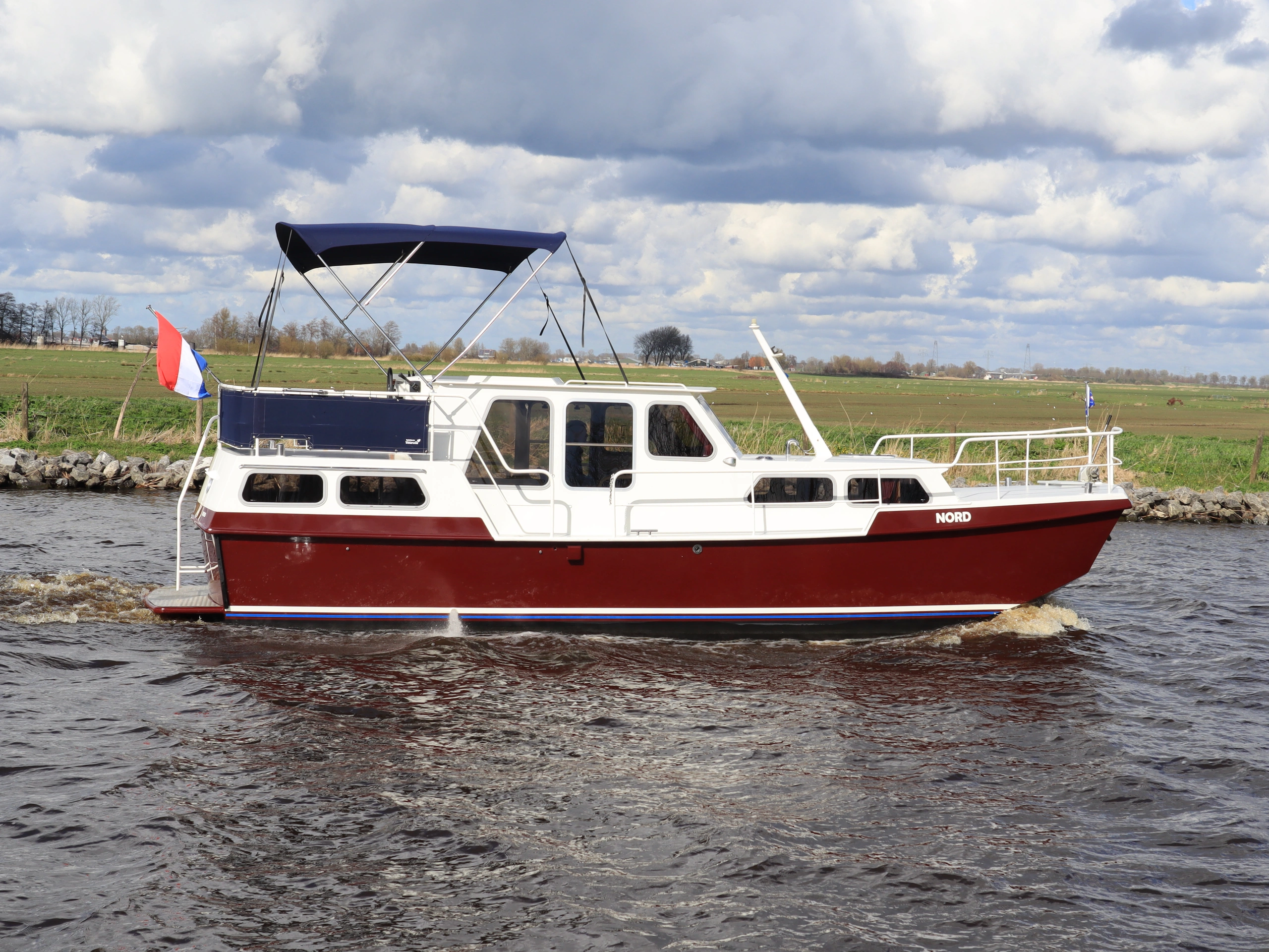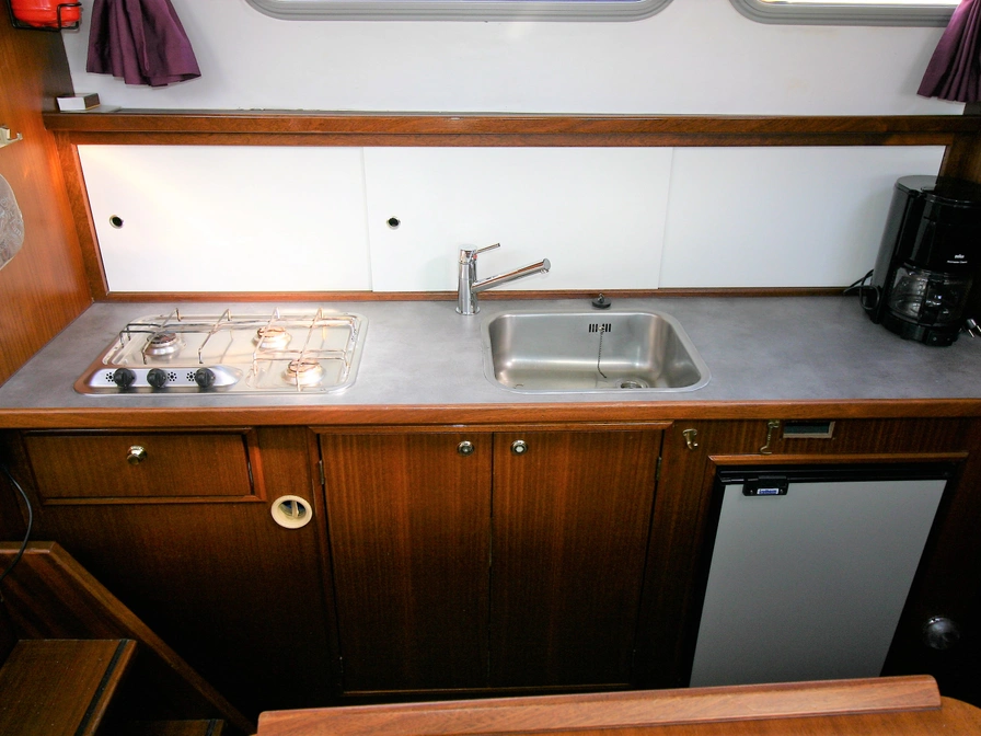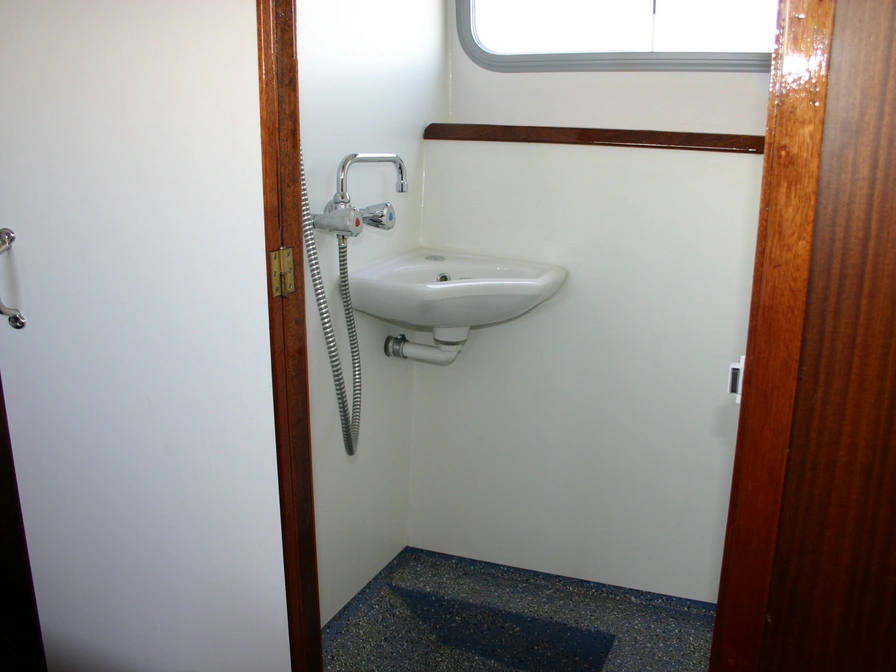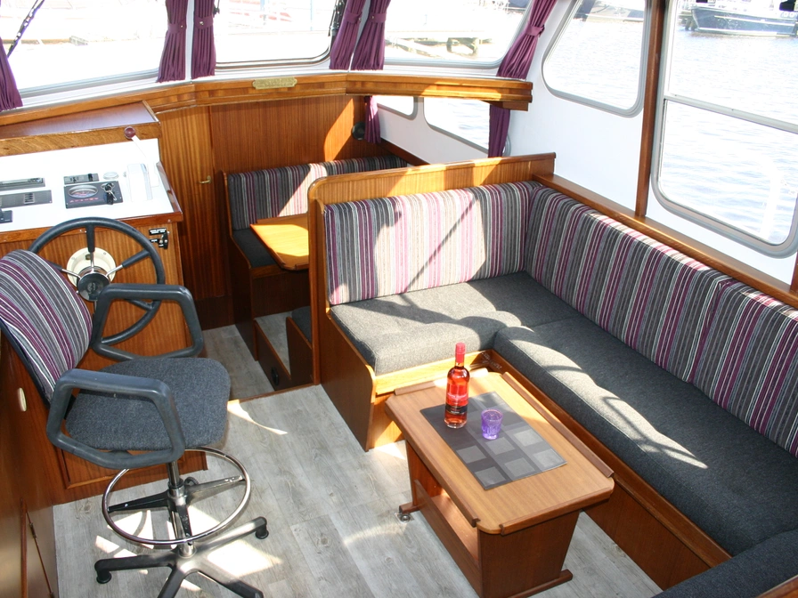 Deze motorboot is makkelijk te varen en heeft een lage doorvaarthoogte. Dankzij de karakteristieke scheepsvorm is het interieur verrassend ruim – een echt ruimtewonder! Ideaal voor een gezin of twee stellen die comfortabel willen genieten op het water. Indeling: Voorin vind je een afgesloten tweepersoonshut met bergruimte en een extra elektrisch toilet. De ruime keuken is voorzien van een 3-pits kooktoestel, koelkast en complete inventaris voor 6 personen. In de salon is een gezellige zithoek en de binnenstuurstand. In de achterkajuit bevindt zich een tweede tweepersoonshut met extra opbergruimte. De badkamer is uitgerust met een douche, wastafel en elektrisch toilet. Buiten geniet je op het zonnedek met tweede stuurstand, zonnepaneel, bimini, dekstoelen, tafel en een zwemplateau met zwemtrap. Met de boeg- én hekschroef manoeuvreer je moeiteloos. Heb je nog geen vaarervaring? Dan is een vaarinstructie verplicht.