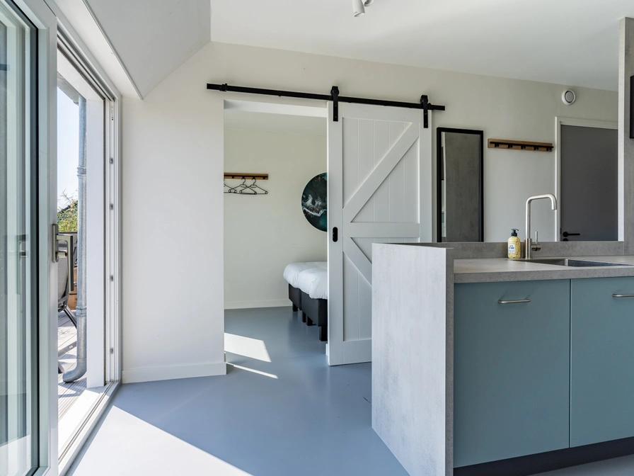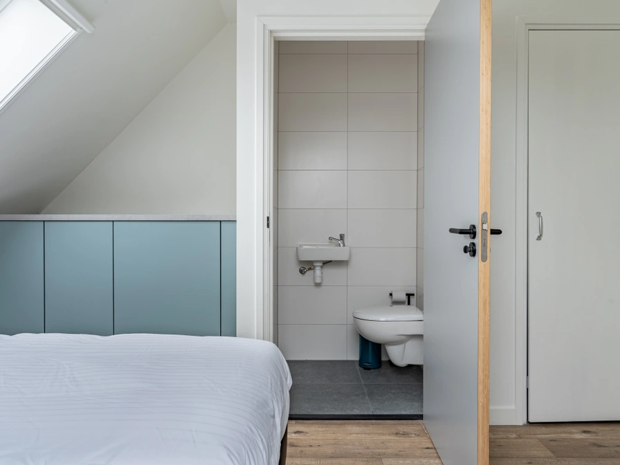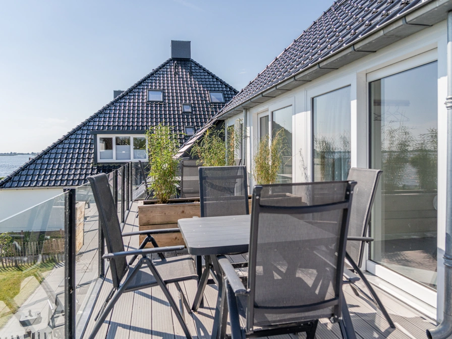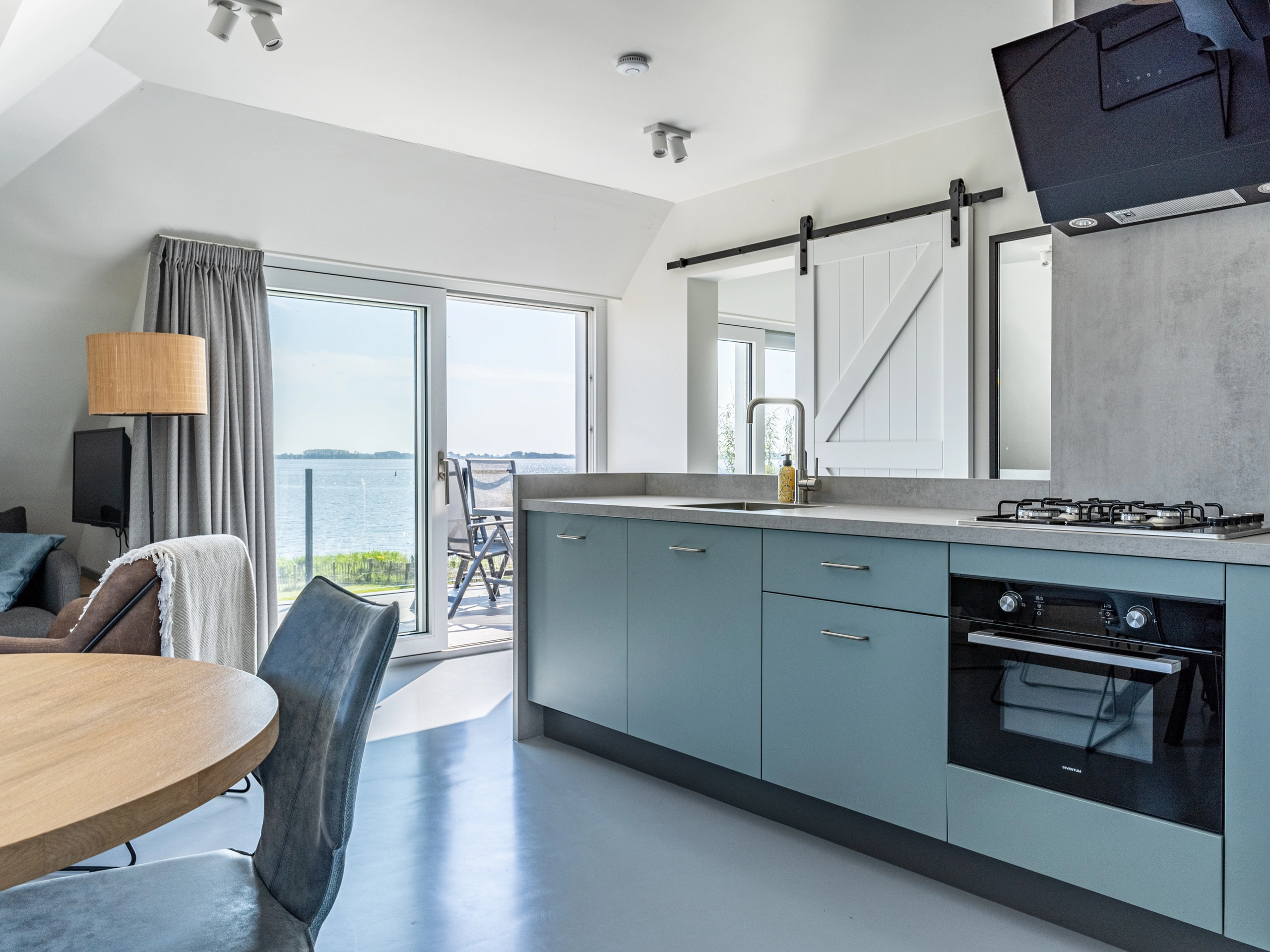Geniet vanaf het balkon, uitgerust met meubilair, van een schitterend uitzicht over het Sneekermeer! Dit vierpersoons appartement is gelegen op de eerste etage van het complex. Via een vaste trap kom je bij de grote voordeur vanwaar je het appartement binnenstapt. Bij binnenkomst loop je langs een badkamer met douche, toilet en wastafel en langs de eerste slaapkamer met eveneens prachtig uitzicht en twee eenpersoons boxspringbedden. Vervolgens stap je de open woonruimte binnen met keuken, eet- en zithoek. De keuken is van alle gemakken voorzien en heeft een losse koelkast. Er is een ruime eethoek en knusse zithoek. Via de trap loop je naar boven waar de tweede slaapruimte is gecreëerd. Deze is niet met een deur af te sluiten. Deze slaapruimte beschikt eveneens over twee eenpersoons boxspringbedden en daarnaast vind je op deze verdieping nog een extra toilet en een wasmachine.