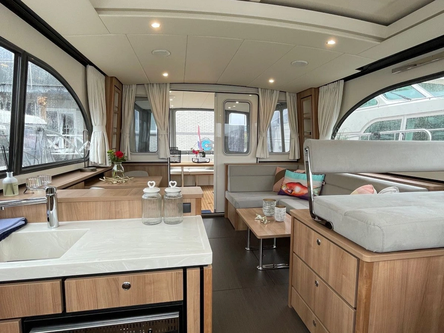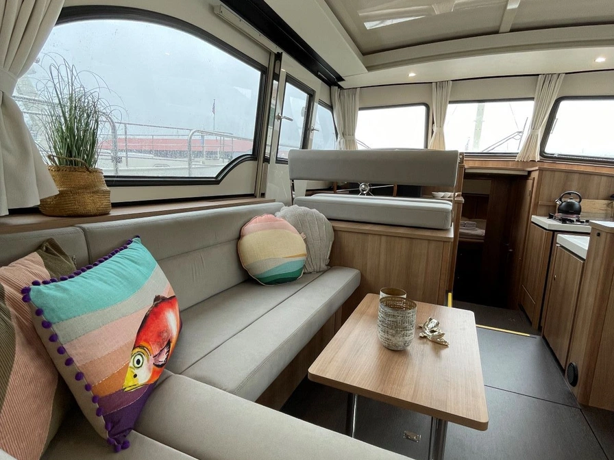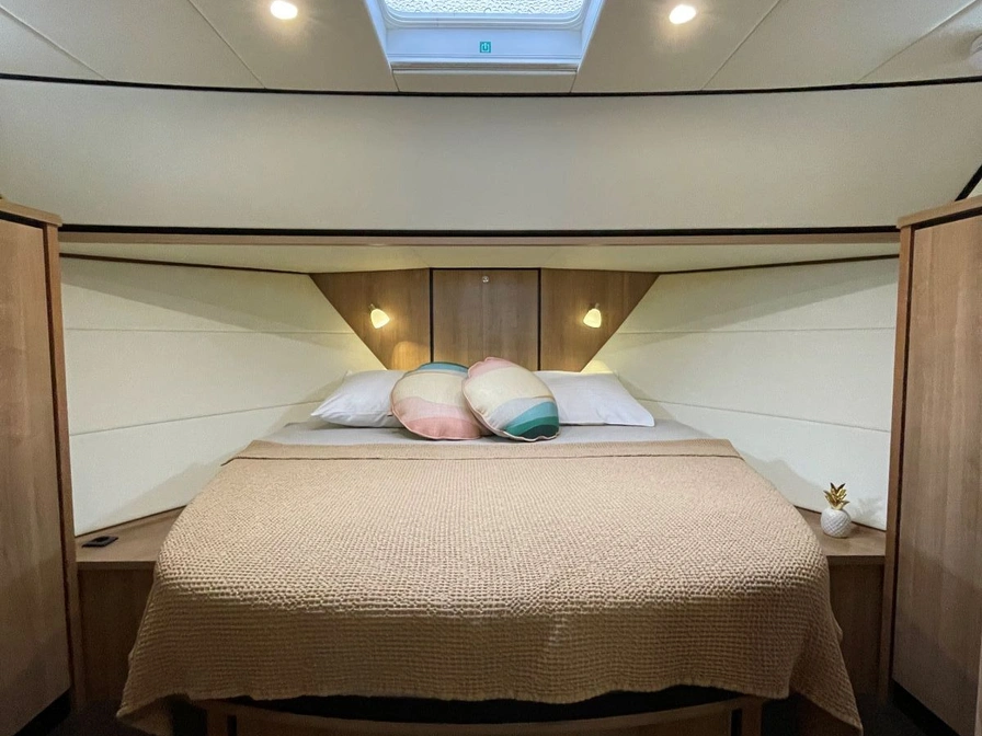 Geniet met vier personen van dit prachtige motorjacht. Je stapt aan boord en meteen valt de ruime open kuip op, tijdens zonnige dagen geniet je hier optimaal. Je bestuurt de boot vanaf een comfortabele plek met uitgebreid navigatiepakket en tweepersoons stuurbank. Aan boord zijn twee slaaphutten, waarvan een over een tweepersoons bed beschikt en de ander over twee eenpersoonsbedden. Er is een fijne badkamer met douche, toilet en wastafel. De keuken is volledig uitgerust en van alle gemakken voorzien. Tevens is er een salon met gezellige zit- en eethoek. Al onze jachten zijn uitgerust met een boeg- en hekschroef.