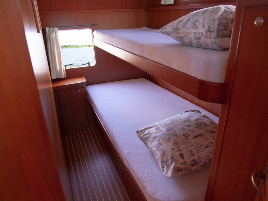 De Schiffart Yachtcharter biedt meerdere kotterjachten aan, variërend in lengte en indeling, zodat er voor elke groep een passend schip beschikbaar is. Een kotterjacht biedt volop ruimte en privacy, ideaal voor gezinnen, vrienden of meerdere stellen. Het bovendek biedt voldoende zitruimte en een stuurstand met uitstekend zicht. Dankzij de boeg- en hekschroef is het kotterjacht eenvoudig te manoeuvreren. Een vaarbewijs is niet nodig, maar enige vaarervaring wordt aanbevolen voor een zorgeloze reis. Voor het reserveren van deze boot dien je rechtstreeks contact op te nemen met de verhuurder.