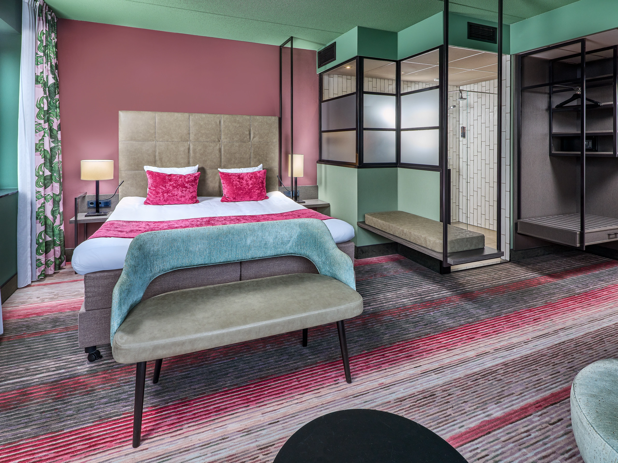 De kleurrijke Superior tweepersoonskamers zijn onderdeel van de nieuwbouw in 2018. Er zijn kamers met 2 aparte bedden (90x210 cm) en kamers met een tweepersoonsbed (180x210 cm). Ook zijn er geschakelde kamers beschikbaar, ideaal voor families! Alle kamers hebben een eigen badkamer met een inloop regendouche, föhn, gratis toiletartikelen en in de kamer is er een apart toilet Er wordt gratis Nespresso koffie en thee faciliteiten aangeboden op de kamer. Verder is er gratis Wi-Fi, airco, een zithoek met een sofa, een bureau, kluisje en flatscreen TV met alle Nederlandse en buitenlandse zenders in de kamer.
