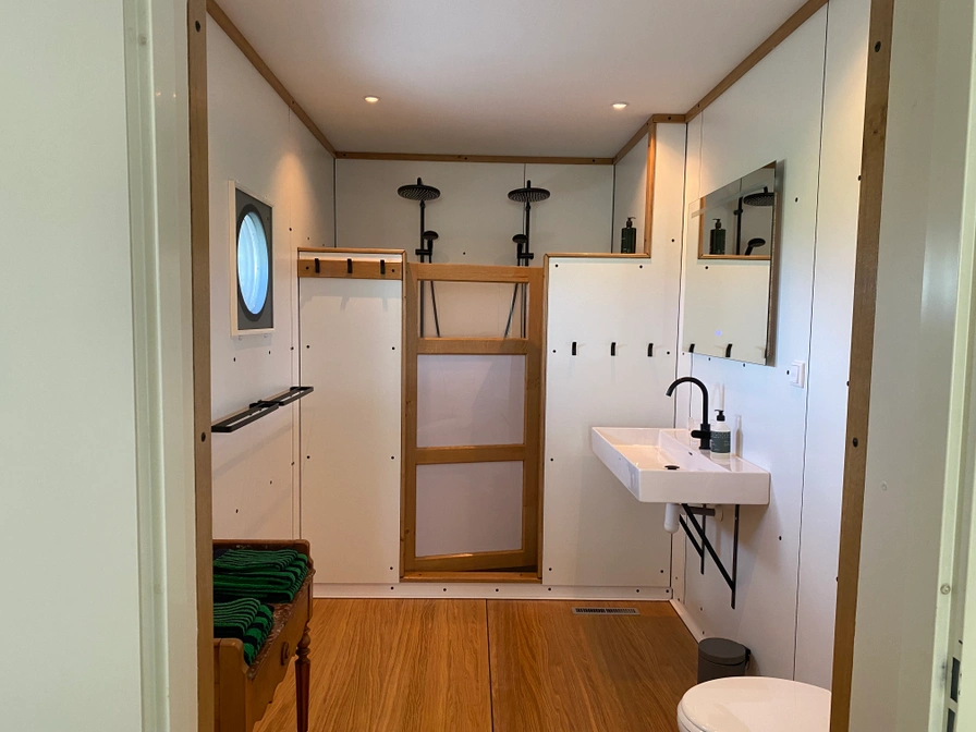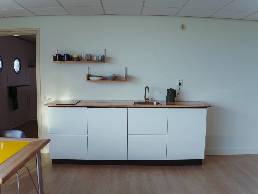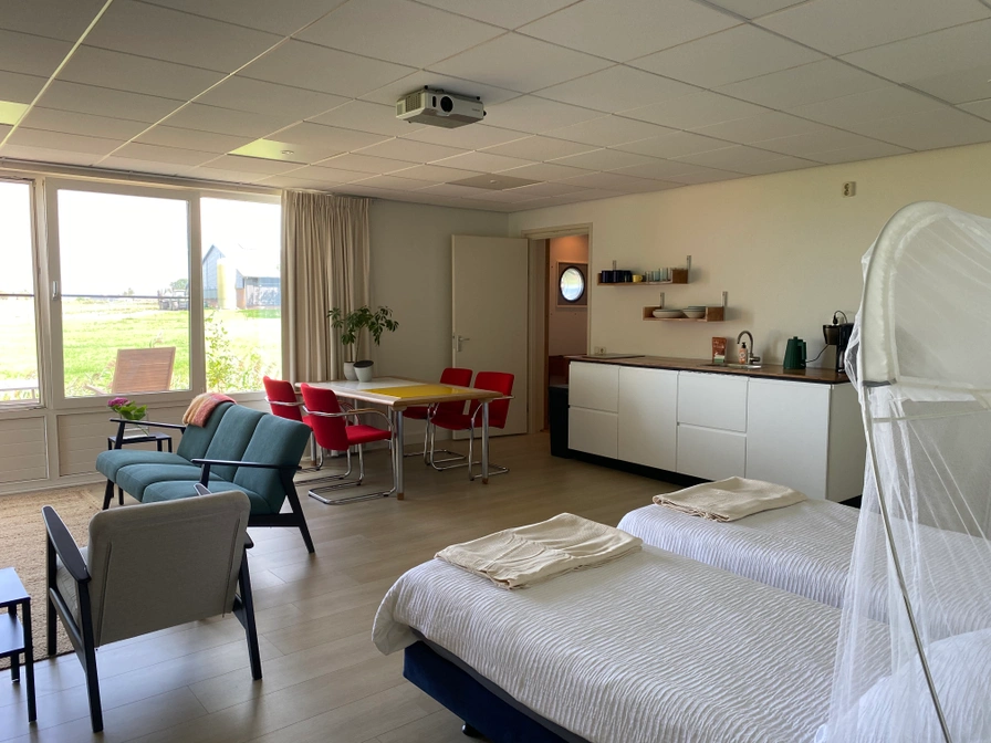Deze fijne studio met grote raampartijen nodigt je uit om optimaal te genieten van rust, ruimte en de natuur. Geniet van de mooiste zonsondergangen vanaf je eigen terras. De studio is compact, maar van alle gemakken voorzien met een zit- en eethoek. Het slaapgedeelte bestaat uit twee extra lange boxspringbedden (220x90 cm) en de keuken is compleet met koelkast, inductieplaat én vaatwasser. In de badkamer vind je een dubbele douche, wastafel en toilet.