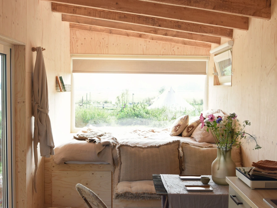 Bij Smûk Tiny ervaar je het leven in het klein. Geluk zit ‘m in de kleine dingen en daar weten wij wel raad mee. Om jou het gevoel van thuis te geven in een Smûkkerig formaat, hebben wij daarom een tiny house op het terrein gebouwd. Met de vertrouwde Scandinavische sfeer en het boerengevoel, biedt Smûk Tiny je de rust die er thuis soms bij inschiet. Het huisje is voorzien van lekkere warme dekbedden voor ultiem comfort. Bij koude nachten kruip je naast de warme, wollen kruiken van Van Buuren. Het grote raam met uitzicht over de weides helpt je om volledig tot rust te komen. Kruip met een heerlijke plaid voor het houtkacheltje buiten op het terras en geniet van het samen zijn. Smûk Tiny is een wifi-vrij huisje, dat compleet is ingericht op verbinden met elkaar en met jezelf. Rondom het huisje is een hoop te doen. Je loopt zo met de picknickmand naar het Smûkstrand, een mooi stukje gras aan het water met heerlijke strandstoelen. Je kunt gebruik maken van de prive hottub bij de Smûk Tiny. Er is elektrische sloepverhuur aanwezig. Je loopt door de bloemenweide naar het water, waar een zwemtrapje en strandstoelen aanwezig zijn. Ga lekker het water op met de kano, dit is inclusief. Er zijn geitjes, kippen voor verse eieren en koeien en paarden in de wei en je kunt verse producten kopen in de aanwezige boerderijwinkel. In de boerderijschuur vind je een gezellige huiskamer. Wie had ooit gedacht dat hooibalen zo stijlvol kunnen zijn? De zachte lichtpeertjes hangen speels door de ruimte. De boerentafels zijn perfect voor een avondje gourmetten, of een potje Rummikub. De huiskamer is een plek waar je gezellig samen kunt zijn maar ook heerlijk jezelf kunt terugtrekken en genieten van de rust die het oude gebint uitstraalt. Soms wordt er een kop koffie gedronken en spelen er kinderen in de kinderkeuken. Op andere momenten is het rustig en plof je in één van de vintage stoelen voor een luie middag.