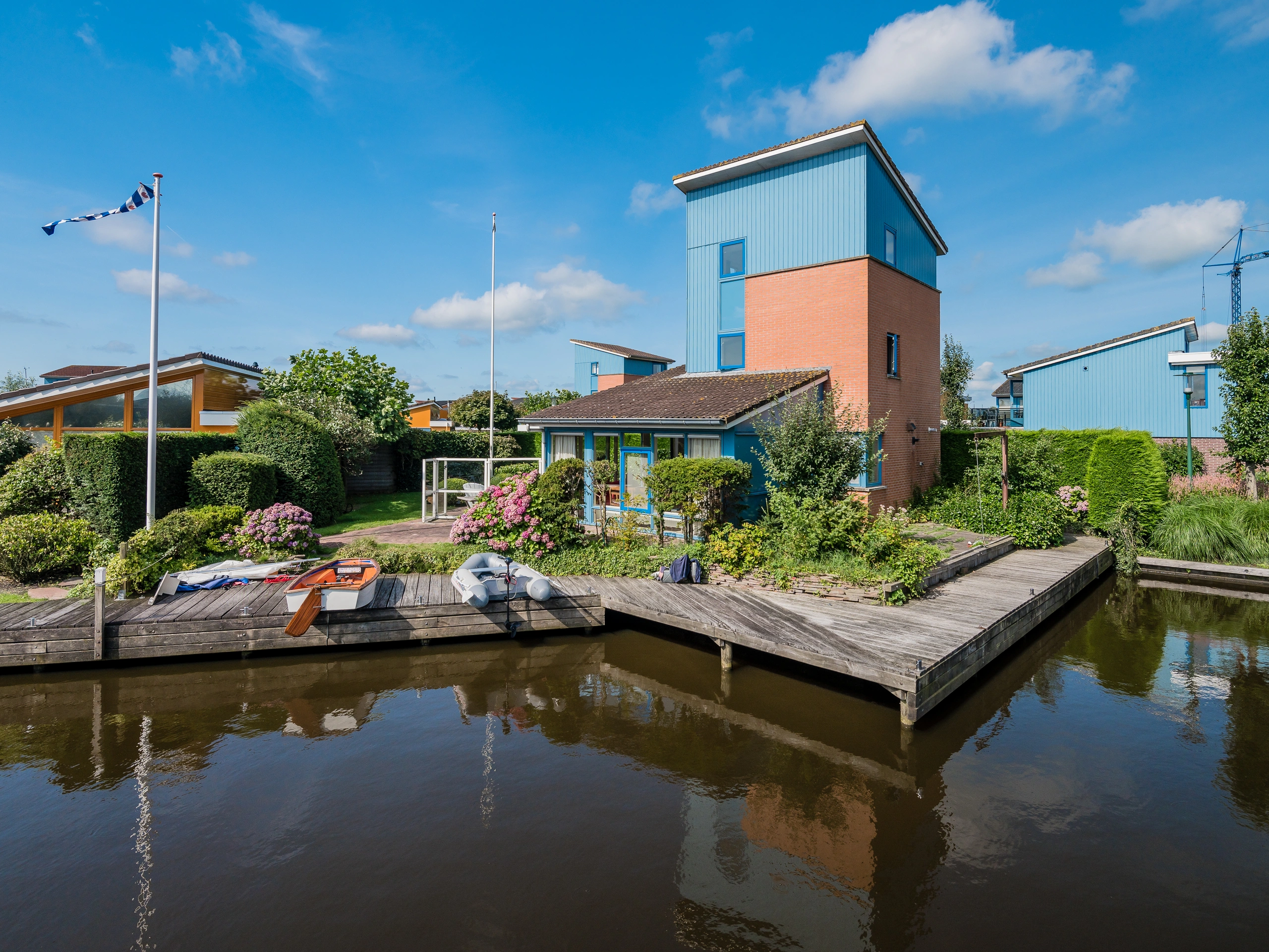 Deze mooie torenwoning ligt gelegen aan het water. De woning is voor zeven personen. Er zijn drie slaapkamers verdeeld over de verdiepingen waarvan een met een tweepersoonsbed, een met hoogslaper en boxspringbed en een met hoogslaper en twee losse bedden. Op elke verdieping vind je een toilet en er zijn twee badkamers. Buiten vind je een haven met je eigen ruime ligplaats. Hier kun je genieten van de riante tuin en het terras aan het water.