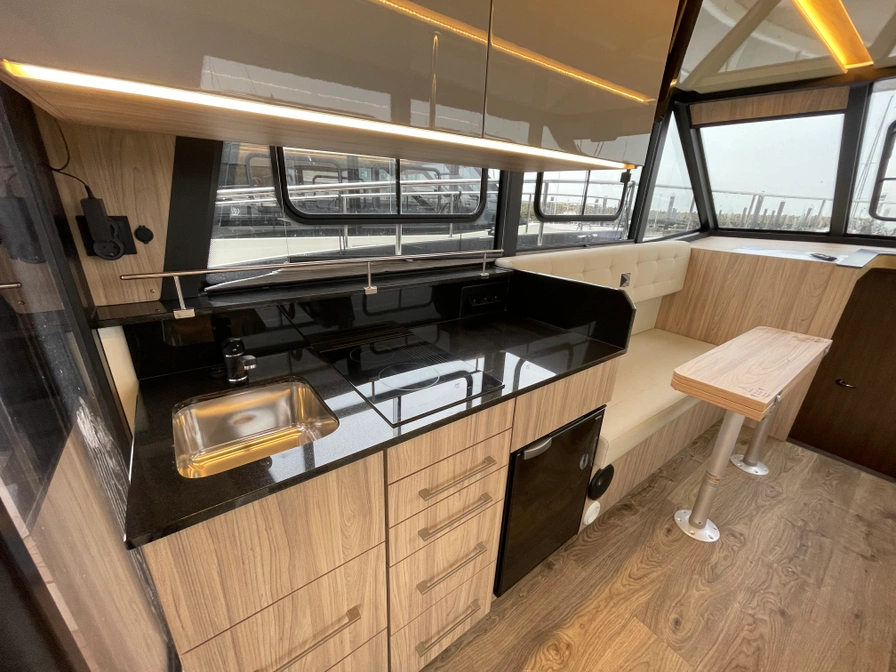 De Cobra Futura 40 is een ruime en comfortabele motorboot voor ontspannen tochten op de Friese meren en het IJsselmeer. Dankzij de geringe diepgang vaar je ook probleemloos in ondieper water. Binnen vind je drie cabines met zes vaste slaapplaatsen, een ruime salon en een praktisch ingerichte keuken. Er zijn drie elektrische toiletten, een douche met warm water en verwarming voor extra comfort aan boord. Met 12V en 230V elektra via walstroom en omvormer is het verblijf compleet. Buiten beschik je over een zwemplateau en comfortabele zitplekken. Met boegschroef en hekschroef manoeuvreer je eenvoudig in de haven.