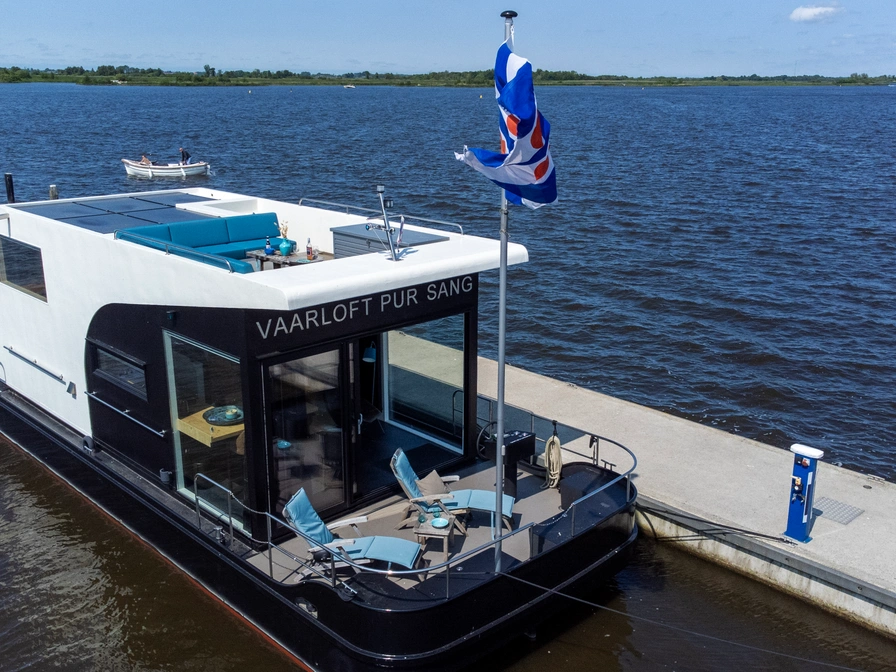 De VaarLoft is op een unieke wijze gebouwd met 5 verschillende verdiepingen met een lounge dakterras. Fenomenaal 360 graden uitzicht over het Sneekermeer! Deze houseboat kun je niet zelf mee varen en wordt stilliggend verhuurd op werkelijk een toplocatie!