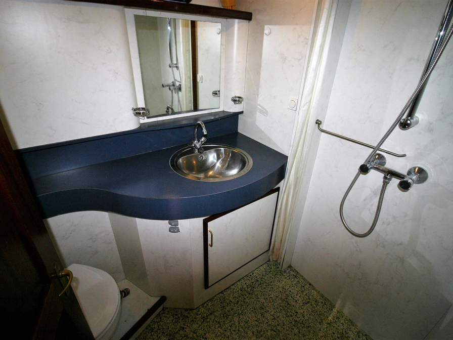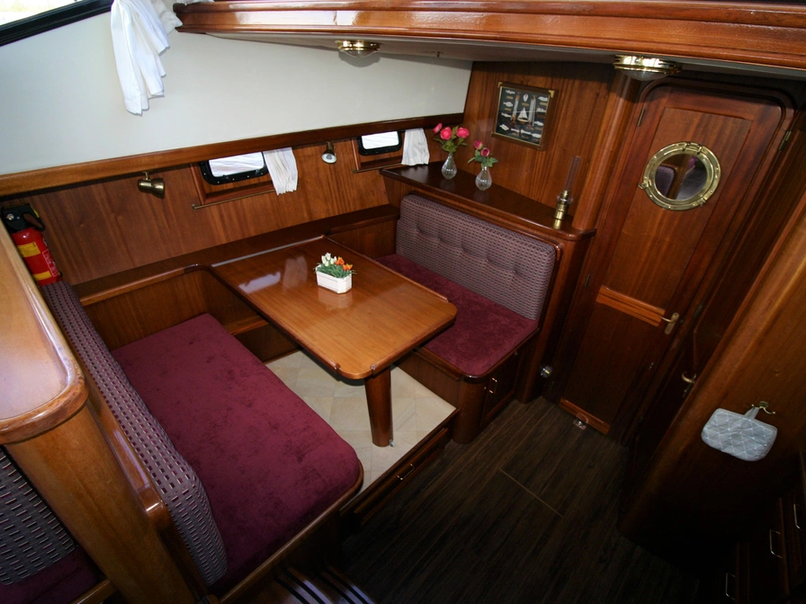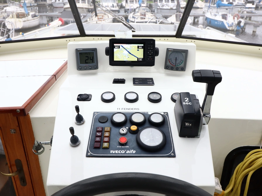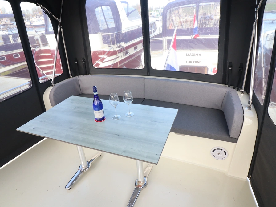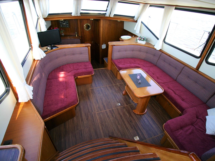 Deze boot is eenvoudig te besturen dankzij de krachtige motor en boeg- en hekschroef. Vanaf het grote zonnedek kun je de boot besturen (met GPS!) en ook kun je hier comfortabel zitten met je gezelschap. Stroom wordt opgewekt met het zonnepaneel. Achter op de boot is een zwemplateau met zwemtrap en buitendouche. Er zijn drie slaapcabines aan boord, twee daarvan op het achterschip en een in de voorkajuit. De slaapkamers bestaan uit tweepersoons bedden of een stapelbed, daarnaast is er ruim voldoende bergruimte. De boot beschikt over twee toiletten, een wastafel en douche. De ruime woonruimte van de boot bestaat uit een comfortabele salon met ruime zithoek met onder andere een tv en radio. De keken bevindt zich eveneens in de woonruimte en is compleet uitgerust met onder andere een gasfornuis, koelkast en voldoende inventaris.