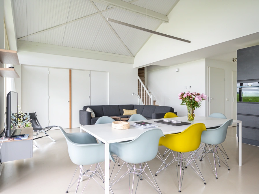 Energie neutrale familiebungalow van 180 m² geschikt voor 14 personen Op de begane grond bevindt zich de hal met een separaat toilet. De twee geschakelde woonkamers beschikken over ieder een zit- en eethoek met flatscreen televisie. De twee open keukens bieden onder andere een combimagnetron, inductiekookplaat, koffiezetapparaat en vaatwasser. Er zijn vijf slaapkamers en twee badkamers met douche op de begane grond. Op de bovenverdieping zijn nog twee slaapkamers en 1 badkamer. Alle slaapkamers hebben twee één persoons boxspring bedden. Ook is de bungalow uitgerust met een veranda en kun je gratis gebruikmaken van WIFI. Dit type accommodatie is rook- en huisdiervrij. Let op! Deze accommodatie ligt niet aan het water. Er is parkeergelegenheid voor één auto bij de accommodatie. Een tweede auto kan op de algemene parkeerplaats staan. De inrichting en indeling van de woning kan verschillen.