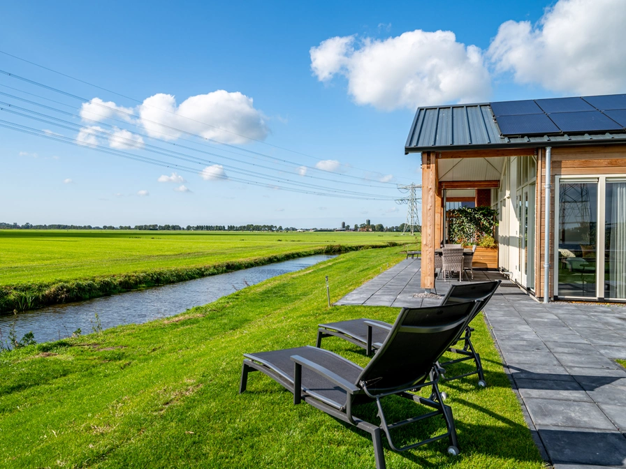 Energieneutrale vrijstaande wellness familiebungalow van 180 m² geschikt voor 14 personen. Wellness liefhebbers opgelet: deze 14-persoons energieneutrale familiewoning (180 m2) beschikt over een buitenspa in de tuin, sauna én sunshower in de badkamer. Daarbij ligt de woning direct aan het open vaarwater en beschikt de woning over een zeer ruime tuin. Vanaf je terras of vanuit je buitenspa geniet je van een schitterend uitzicht op het water, landerijen en ondergaande zon. Op de begane grond bevindt zich de hal met een separaat toilet. De twee geschakelde woonkamers beschikken over ieder een zit- en eethoek met flatscreen televisie. De twee open keukens bieden onder andere een combimagnetron, inductiekookplaat, koffiezetapparaat en extra stille vaatwasser. Er zijn vijf slaapkamers en twee badkamers met douche op de begane grond. Op de bovenverdieping zijn nog twee slaapkamers. Alle slaapkamers hebben twee éénpersoons boxspringbedden. Er is een luxe badkamer met regendouche, sunshower, wastafel en toilet. Je verblijf is inclusief gebruik van gratis WiFi en twee parkeerplaatsen bij de woning. Deze woning is rook- en huisdiervrij. Geniet vanuit je tuin van een weids uitzicht over de Meine Sleat. Let op! Deze woning heeft geen eigen aanlegsteiger. Er is parkeergelegenheid voor twee auto's bij de accommodatie. Extra auto's kunnen op de algemene parkeerplaats staan. De inrichting en indeling van de woning kan verschillen.