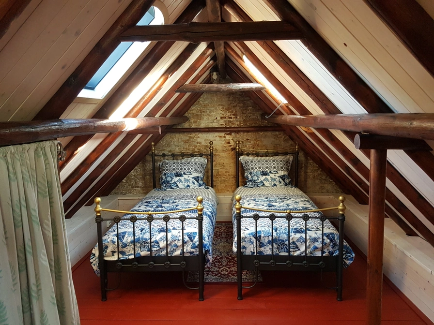 Deze authentieke vakantiewoning hoort bij een monumentale boerderij. Op de begane grond van de woning vind je een moderne, goed uitgeruste keuken met onder andere een vaatwasser en oven! De rest van de begane grond is sfeervol ingericht met een fijne eethoek en knusse zitruimte. De badkamer is eveneens op de begane grond, deze is compleet met wastafel, toilet en douche. Wanneer je de trap oploopt naar boven, dan zie je hier de slaapkamer met twee eenpersoonsbedden. Indien nodig, kan hier van de slaapbank een extra slaapplaats gecreëerd worden.