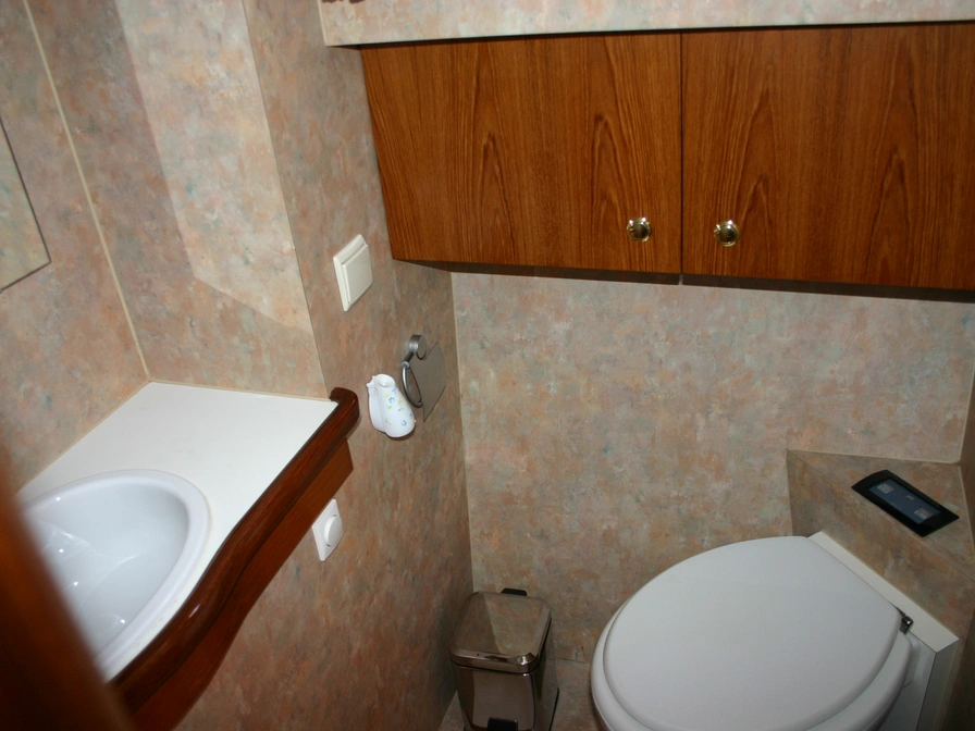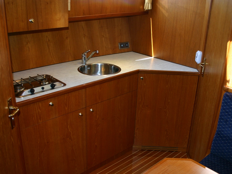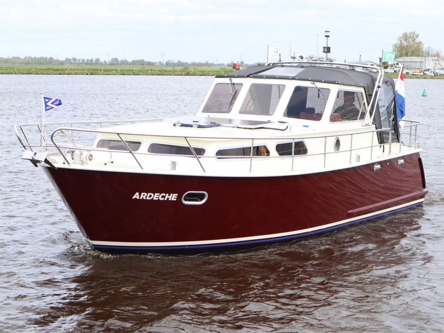 Dit sportieve motorjacht is van alle gemakken voorzien en ideaal voor stellen die comfort en privacy waarderen. Dankzij de krachtige boeg- en hekschroef manoeuvreer je het schip moeiteloos, ook in kleinere havens. Indeling: In de voorkajuit slaap je comfortabel in een Frans bed, omringd door veel kastruimte. De keuken is compleet ingericht voor 2 personen en voorzien van een 2-pits kooktoestel, koelkast, 75-liter boiler, koffiezetapparaat en de nodige inventaris. In de salon geniet je van een ruime zithoek, tv en radio. De badkamer is uitgerust met een douche, wastafel en elektrisch toilet. Buiten vind je een grote open kuip met cabrioletkap, stuurstand, GPS-kaartplotter, verwarming, een gezellige zithoek, een tweede koelkast en een zonnepaneel. Het zwemplateau is voorzien van een zwemtrap en een buitendouche – ideaal voor een frisse duik. Let op: heb je nog geen vaarervaring? Dan is een vaarinstructie verplicht.