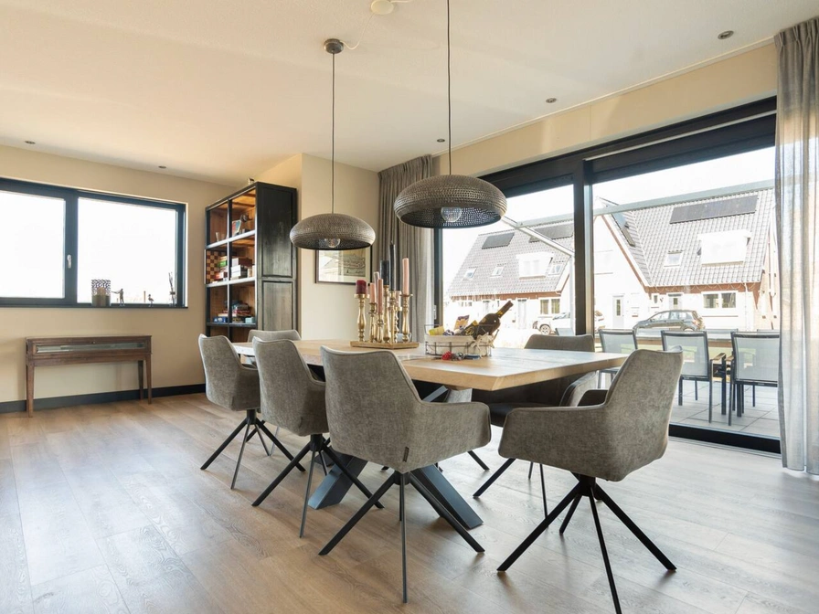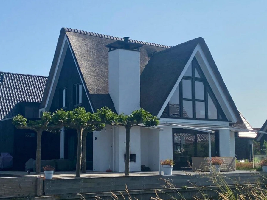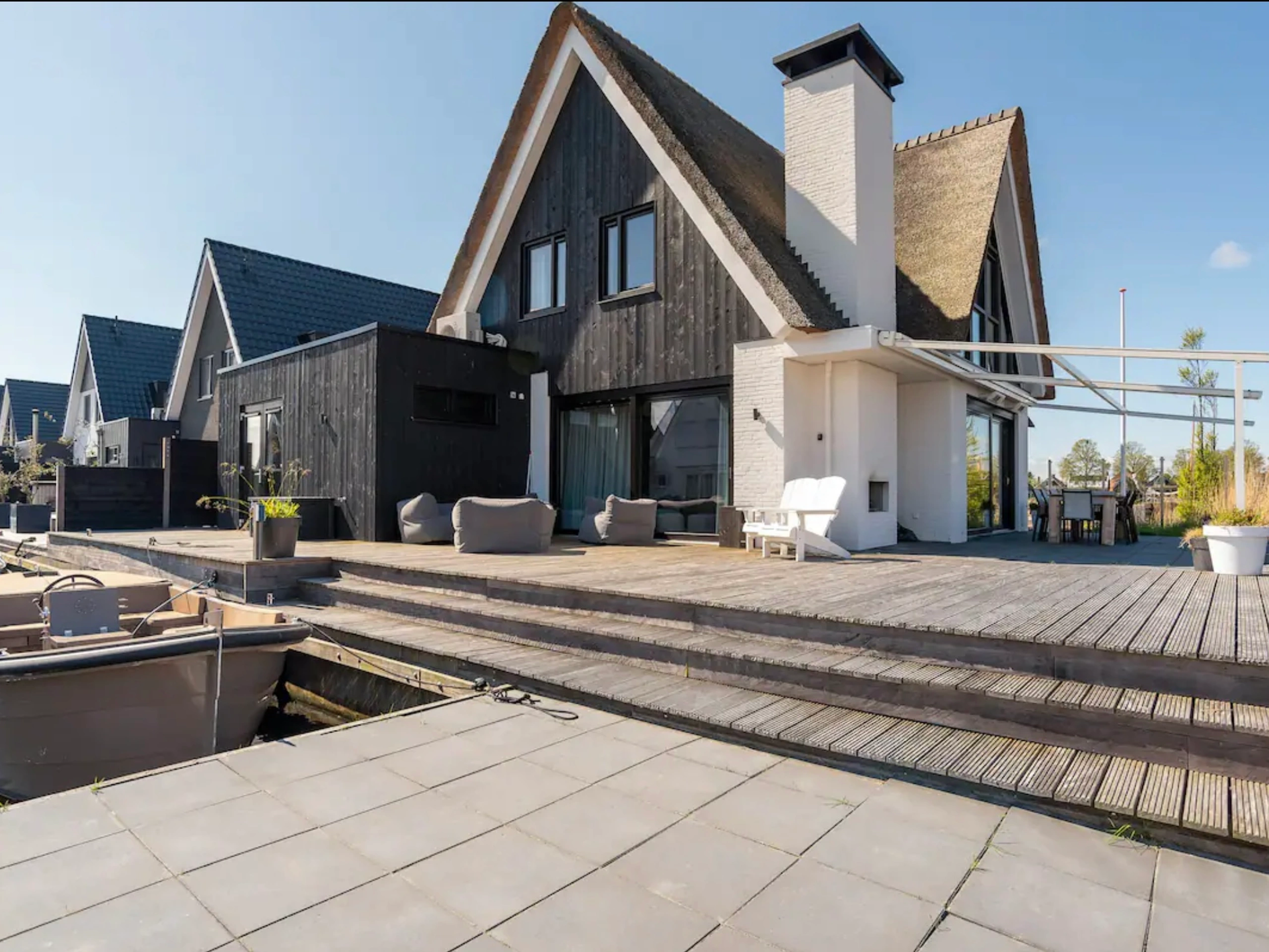 Zeer ruime, luxe villa, gebouwd in 2020. 4 ruime slaapkamers, elk met eigen badkamer (Douche, wastafel en toilet). 3 kamers met kingsize bedden en 1 kamer met 2 eenpersoonsbedden. Woonkamer met sfeerhaard, eettafel en open keuken voorzien van alle denkbare apparatuur. Schuifdeuren naar het grote terras met water aan twee zijden en verschillende zithoeken. Buitenkeuken, buiten open haard en eigen ligplaats
