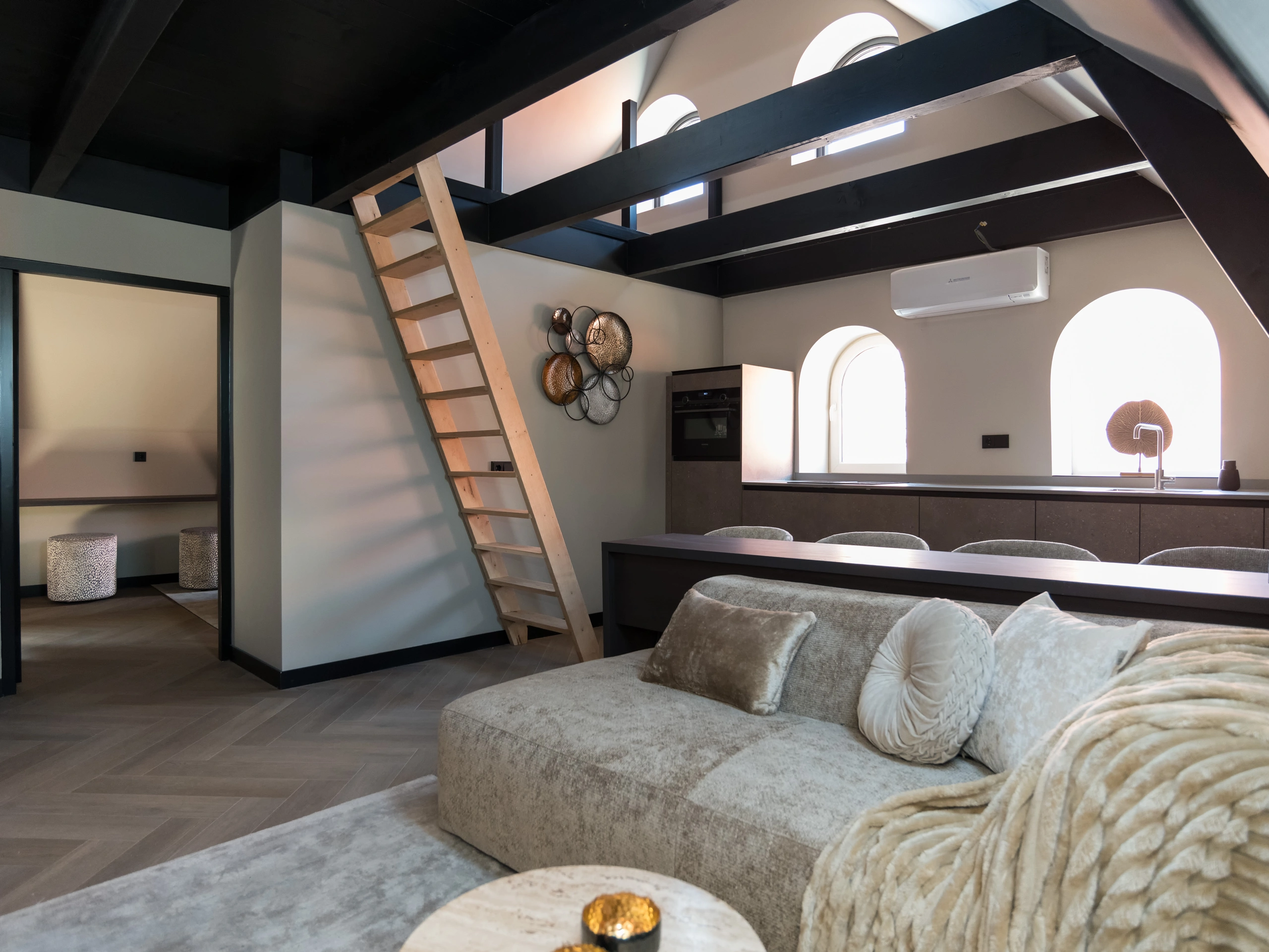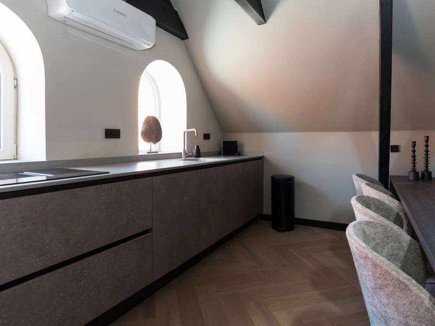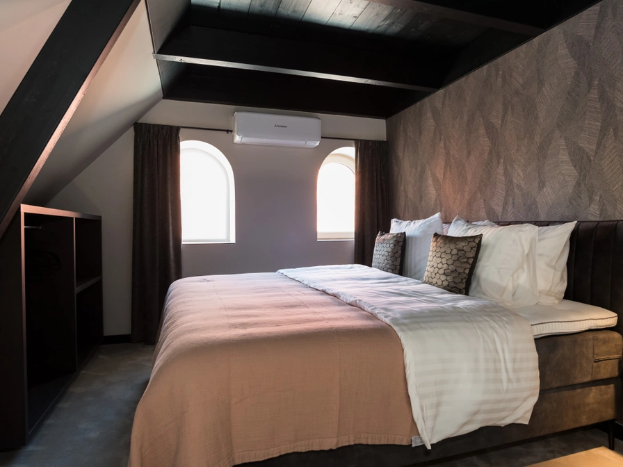 Dit vierpersoons appartement op de tweede verdieping heeft een slaapkamer met tweepersoonsbed en luxe badkamer en een extra slaapkamer op de vide. De woonkamer met moderne keuken en de airconditioning in het hele appartement zorgen voor extra comfort. De inrichting in warme goud- en zwarttinten geeft het geheel een stijlvolle uitstraling. Een ideale plek voor een comfortabel verblijf in Sneek. Om deze accommodatie te boeken, dien je rechtstreeks contact op te nemen met de verhuurder.
