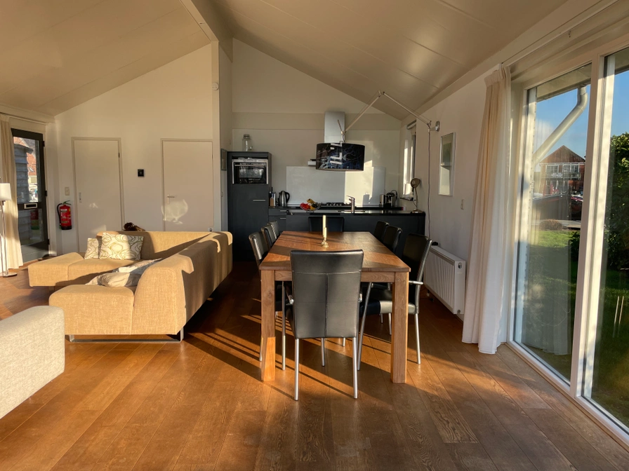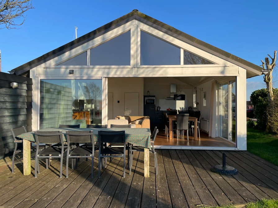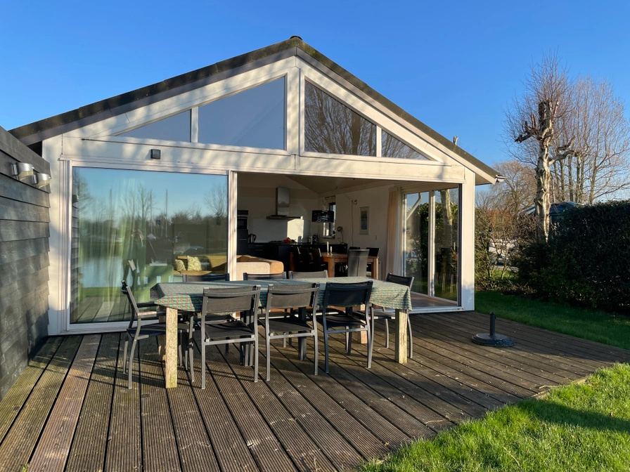 Heerlijk genieten en ontspannen kan in dit gezellige vakantiehuis met een kop koffie of glas wijn op het terras gelegen op het zuiden, direct aan het water. De vrijstaande woning is gezellig ingericht en van alle gemakken voorzien. Bij binnenkomst kom je in de open leefruimte met een open keuken met combi-oven/magnetron en vaatwasser, eethoek en gezellige zithoek. De keuken grenst met openslaande deuren aan de tuin op het zonnige zuiden. De woning heeft een moderne badkamer met zeer ruime inloopdouche en toilet. Er is ook nog een separaat toilet aanwezig. De woning is ingericht voor 8 personen en heeft 3 slaapkamers. De ene slaapkamer is voorzien van een 2 persoons bed en stapelbed, de tweede slaapkamer heeft een stapelbed en de derde slaapkamer heeft 2 losse bedden. Ook is er voldoende kastruimte. Op het terras staat een terrastafel, 8 terrasstoelen, 2 lounge stoelen en een parasol.