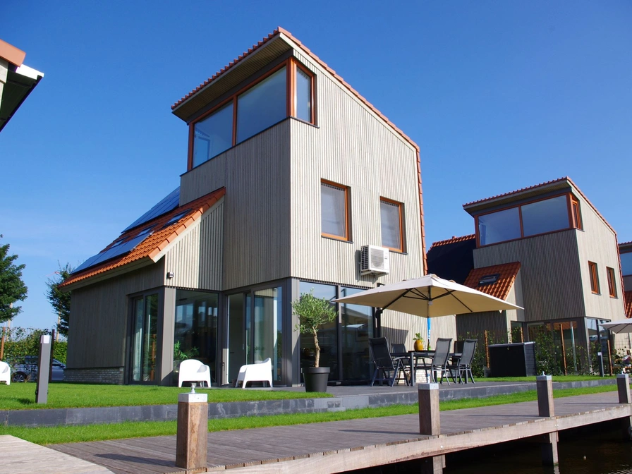 Welkom in deze heerlijke vakantievilla in Heeg! Het vakantiehuis is gelegen aan het open vaar- en zwemwater naar het Heegermeer en de Fluessen. De vrijstaande villa is modern en luxe ingericht, met een sauna, maar duurzaamheid staat hoog in het vaandel. Wanneer je de hal van deze prachtige nieuwe woning binnenstapt loop je langs de toiletruimte. Even verderop is de ruime woonkamer met goed uitgeruste keuken. Tevens kun je hier ook doorlopen naar de bijkeuken waar je een Finse infrarood sauna, wasmachine en droger tegenkomt. Via de woonkamer kun je naar buiten naar de tuin, hier staat een fijne tuintafel met stoelen en via de steiger neem je zo een duik in het water, of stap je toch liever aan boord van de sloep die voor je klaar ligt? (in overleg te huur) Op de eerste verdieping vindt je drie slaapkamers die allen voorzien zijn van airconditioning en horren voor de ramen. Ook is hier de tweede badkamer die uitgerust is met een douche, toilet en wastafel. Wanneer je nog een trap naar boven wandelt, kom je op de zolderverdieping, hier is een ruime kamer met zithoek die tevens als slaapbank voor twee personen kan dienen en een tweede tv. Vanuit deze zolderkamer heb je een prachtig uitzicht over het water.