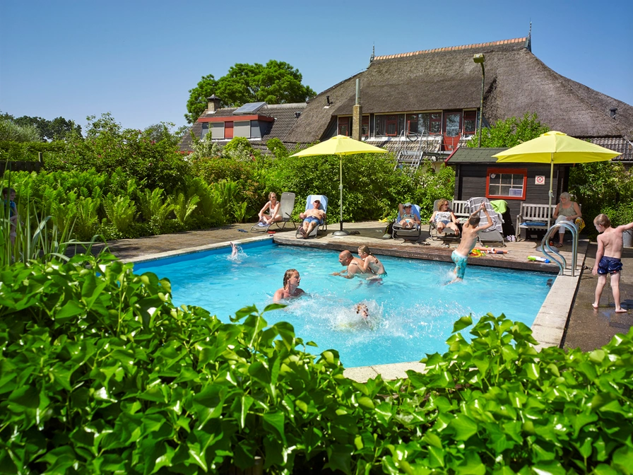 Onze rietgedekte boerderij ligt op 300 meter van de openbare weg. Tussen water en weilanden in een natura 2000 gebied. De koeien zijn onze buren. En verder is het oorverdovend stil. Naast de Zonneroos ligt er nog een separaat gebouw de Zonnebloem, een sauna en een door zonnecollectoren verwarmd zwembad.